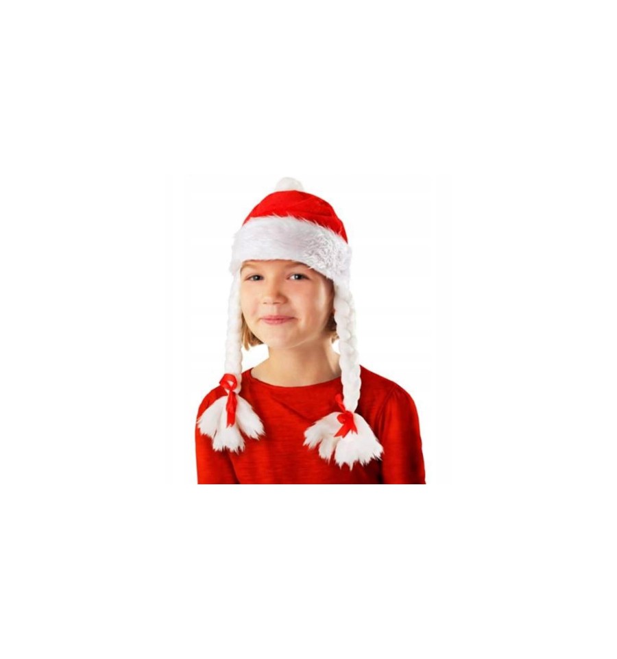 Czapka Mikołajowej Mikołajka z Warkoczami Święta