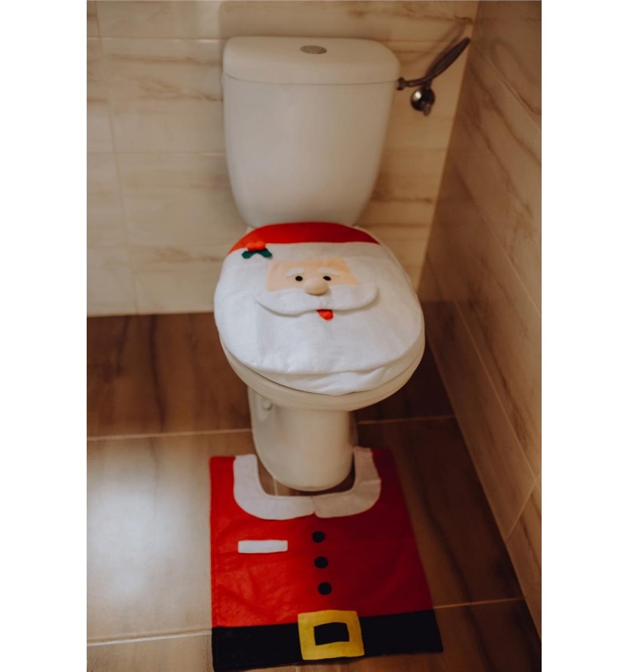 ✅Bożonarodzeniowy zestaw łazienkowy to pokrowiec z twarzą Świętego Mikołaja oraz dywanik imitujący jego ubranie.