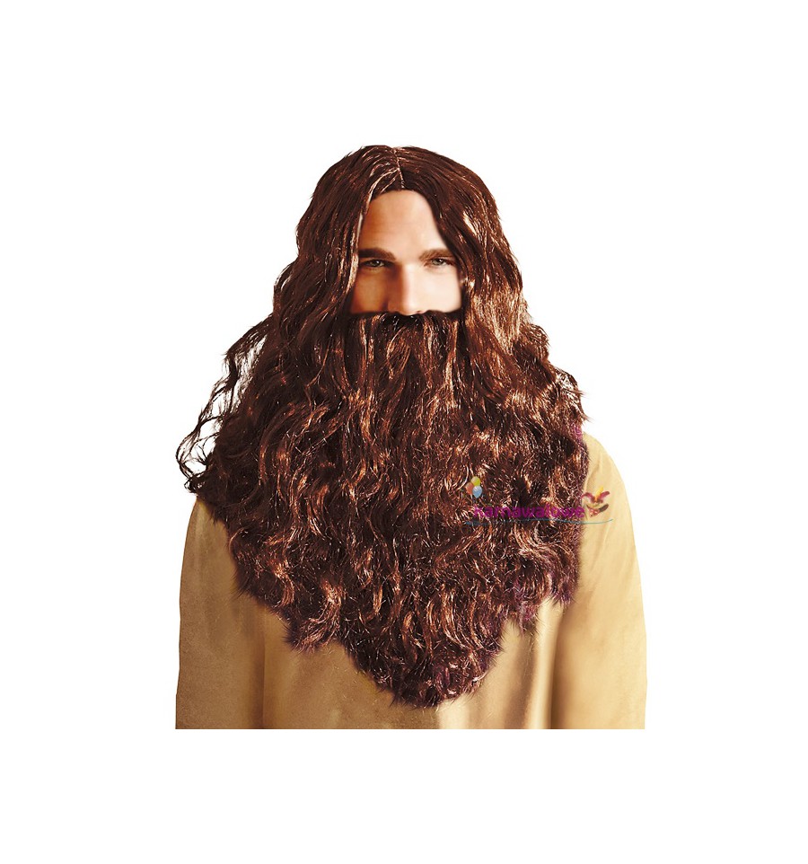 ✅Długa, gęsta brązowo-kasztanowa peruka i broda z wąsami.
