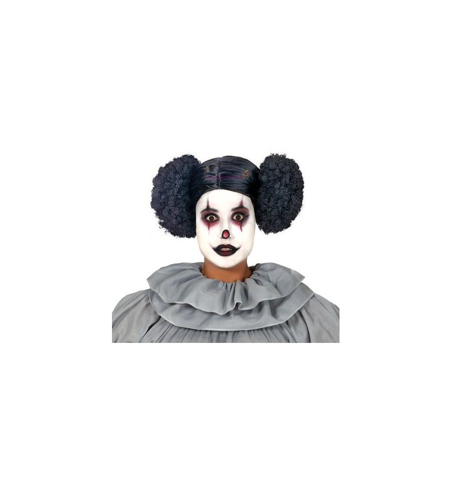 Peruka Damska Krótka Czarna z Kokami Leia Joker Klaun