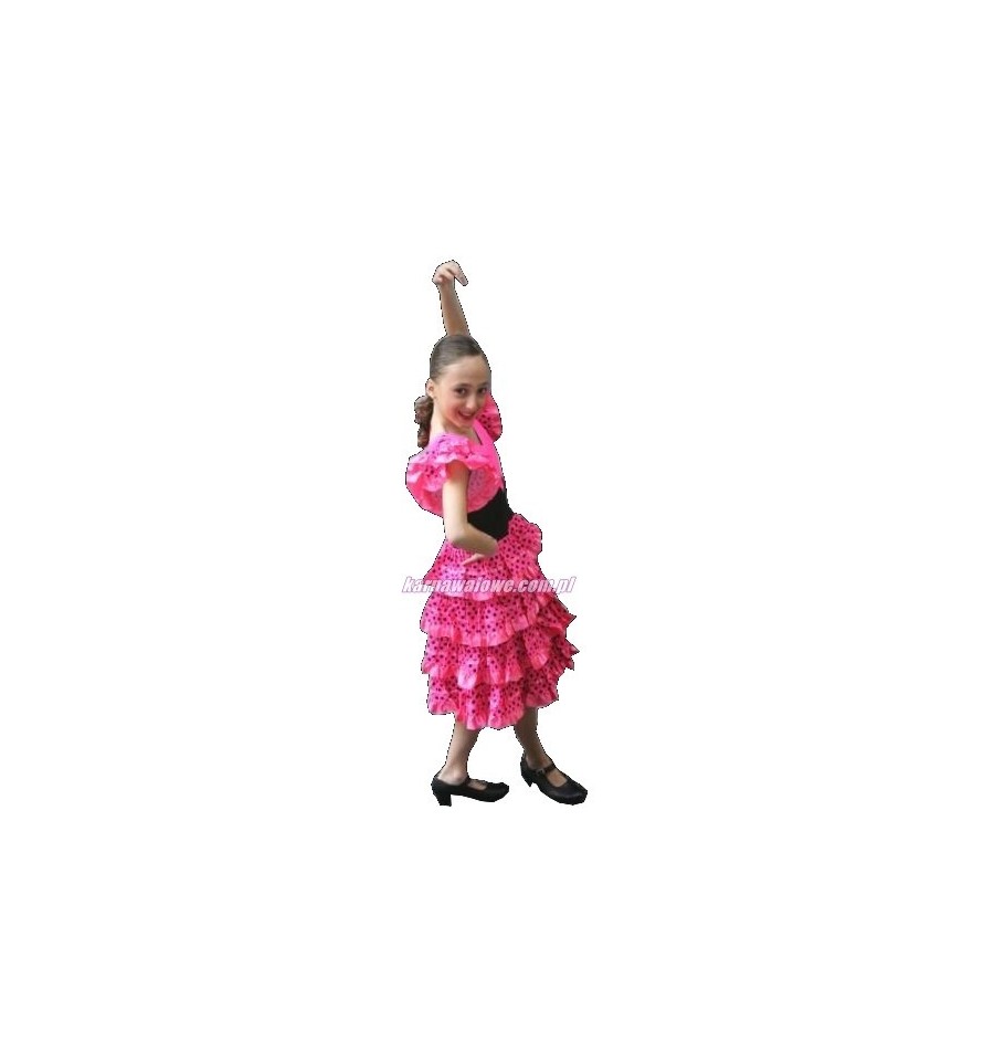 Strój Różowo Czarny Flamenco Hiszpanka na Bal Karnawał roz. 140 WYPRZEDAŻ
