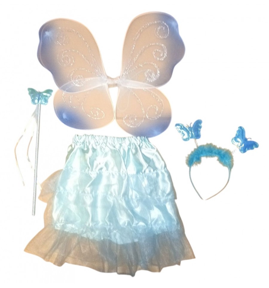 Strój "MOTYLEK BŁĘKITNY" SPÓDNICA SKRZYDŁA OPASKA RÓŻDŻKA WYPRZEDAŻ