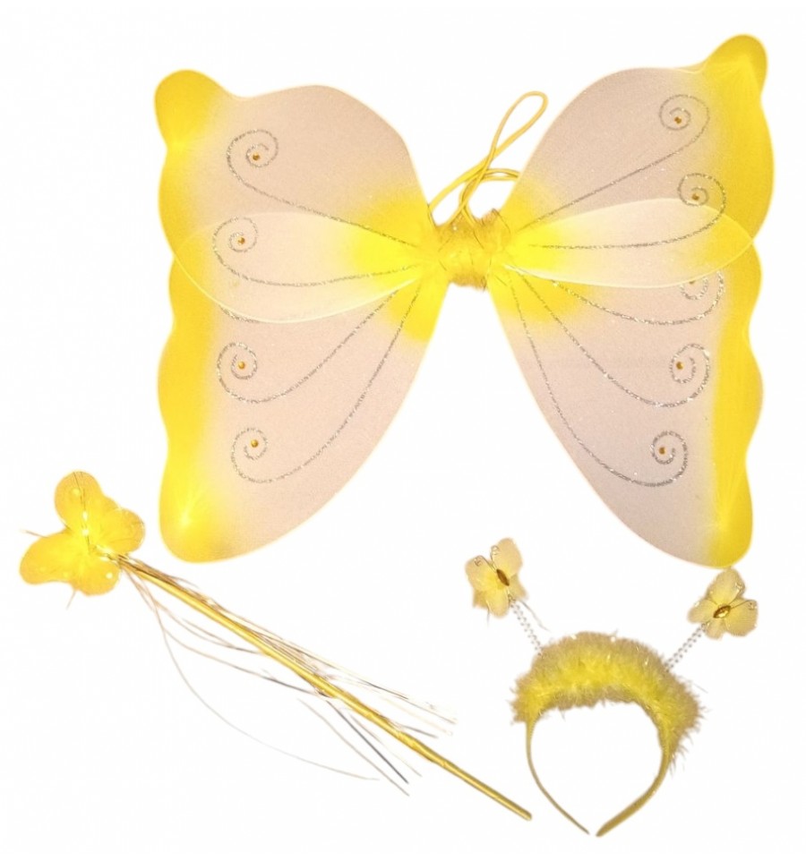 Strój "WRÓŻKI MOTYLA ŻÓŁTY" SKRZYDŁA OPASKA RÓŻDŻKA WYPRZEDAŻ
