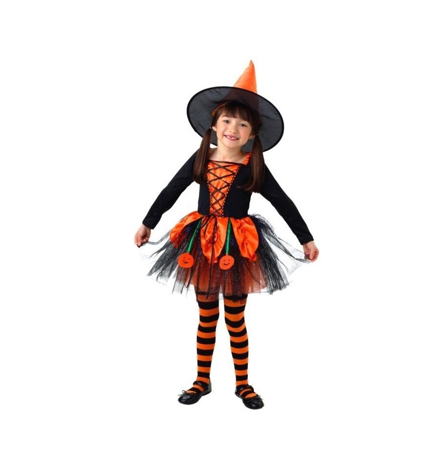 Zestaw Strój Czarownica Dynia + Rajstopy w Paski 2 el Halloween