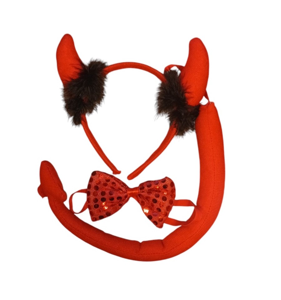 ✅Fantazyjny Zestaw Diabełek Opaska + Mucha z cekinami + Ogon