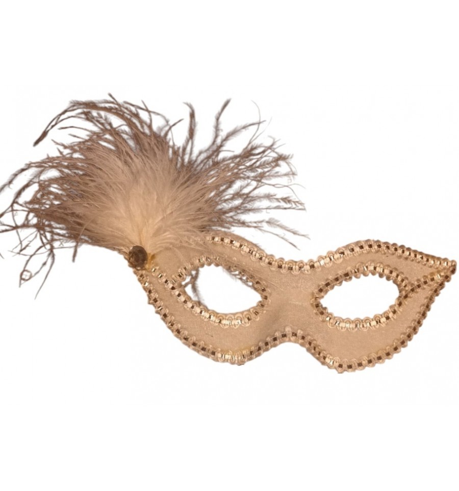 Maska karnawałowa ozdobiona delikatnym piórkiem i subtelną srebrną aplikacją.