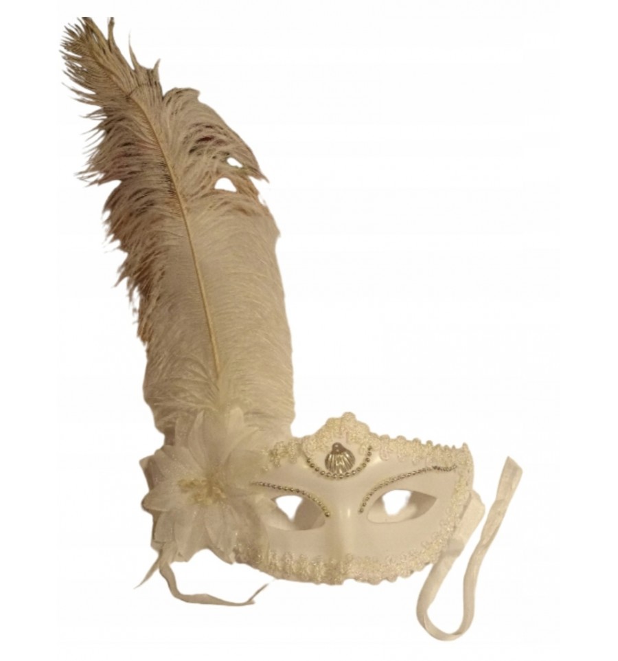 MASKA BIAŁA Z KWIATEM I PIÓREM WYPRZEDAŻ
