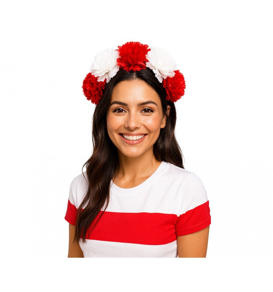 ✅Przygotuj się na każdą okazję z naszą opaską z biało-czerwonymi kwiatami.
