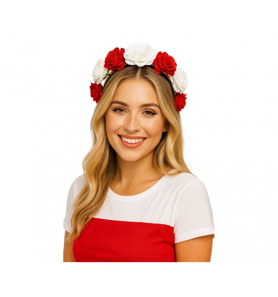 ✅Przygotuj się na każdą okazję z naszą opaską z biało-czerwonymi kwiatami.