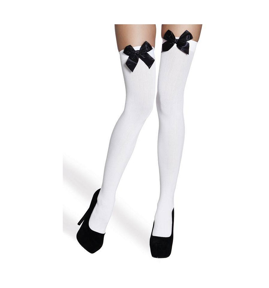 ✅Pończochy białe z czarnymi kokardami to klasyczny, a zarazem seksowny dodatek do strojów damskich.