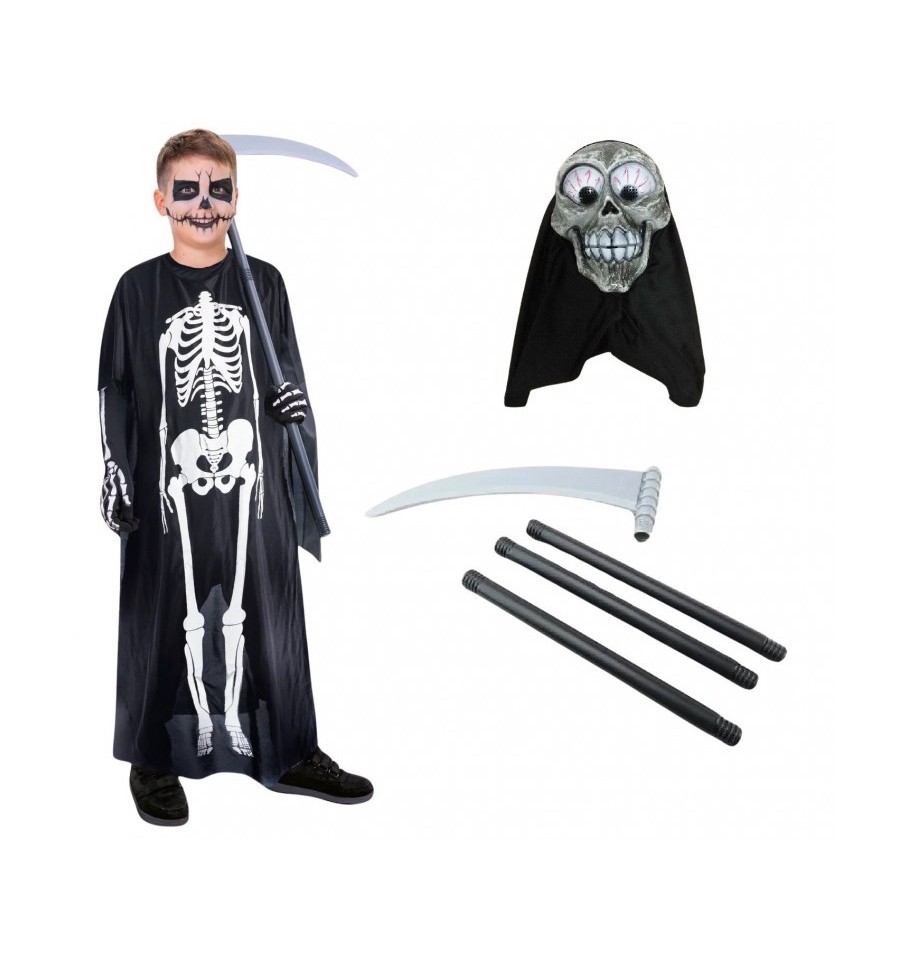 Zestaw Strój Szkielet Kościotrup Maska Kosa Składana 3 el HALLOWEEN