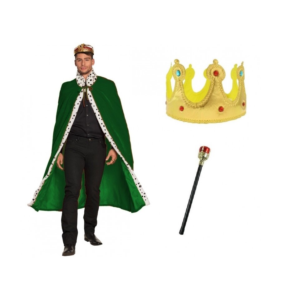 Zestaw Strój Peleryna Zielona Króla Korona Berło dla dorosłych 3 el
