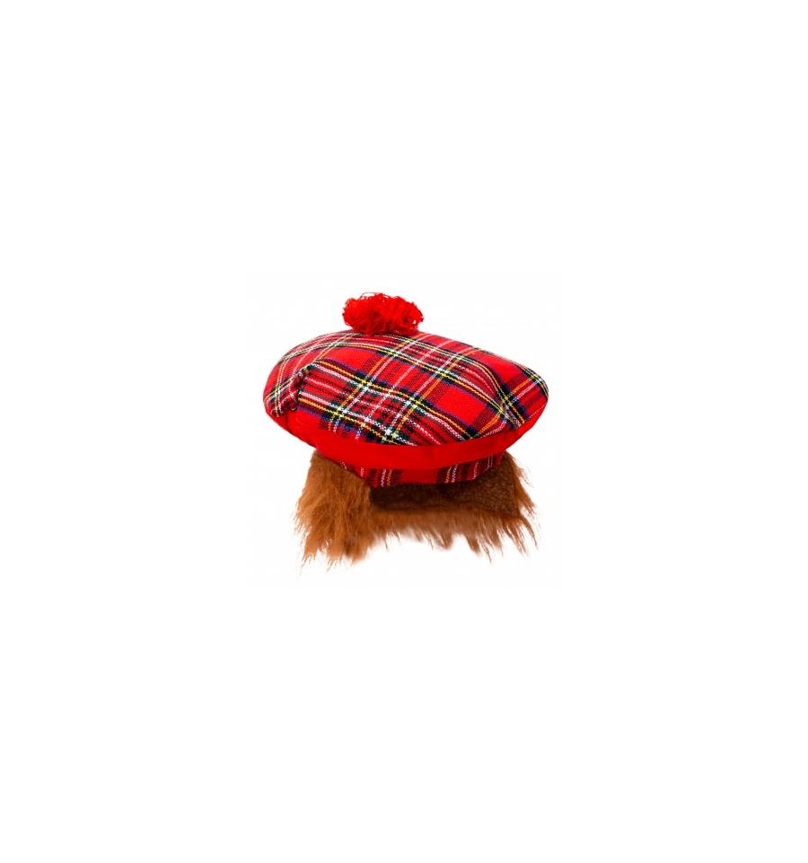 ✅Czapka w szkocką kratkę z czerwonym pomponem z doczepionymi sztucznymi rudymi włosami oryginalny dodatek do stroju szkota.