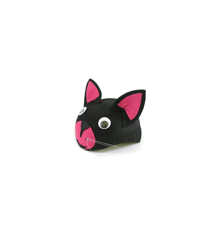 Czapka filcowa Kotek w kolorze czarnym z różowymi elementami. Zdobiona charakterystycznymi elementami na wzór Kotka. Zamocowane oczka oraz uszy są ruchome.