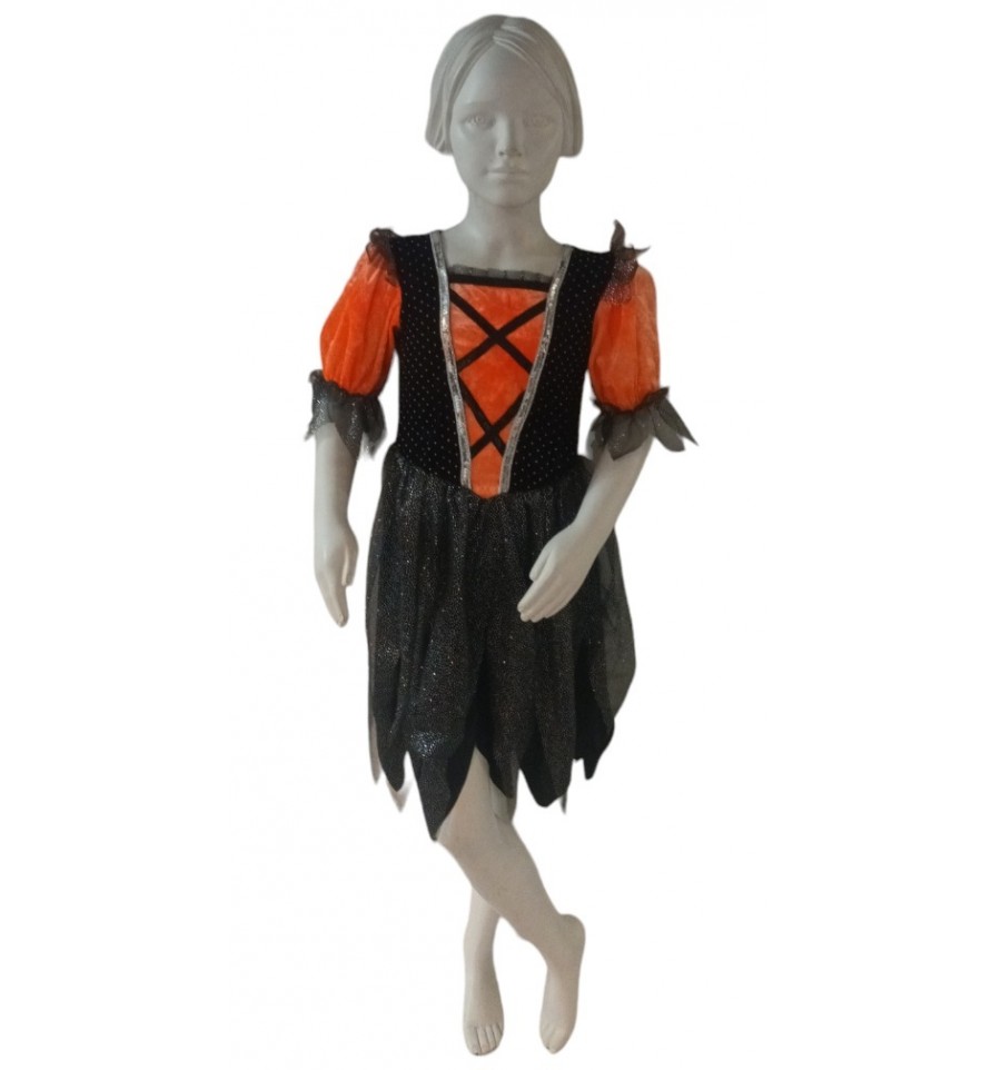 Strój Czarownicy Czarno Pomarańczowy na Bal Karnawał roz. 128 WYPRZEDAŻ