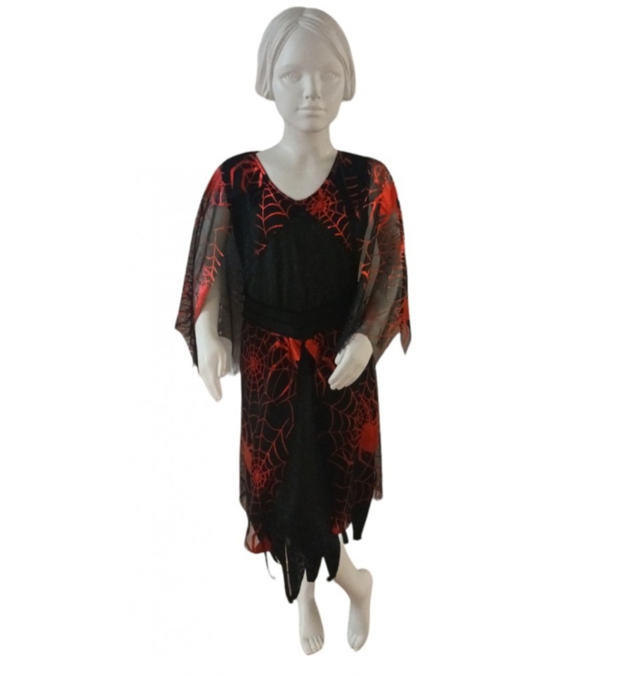 ✅ w pasie wszyta czarna spódnica z tiulu w czerwone wzory pajęczyny i pająki