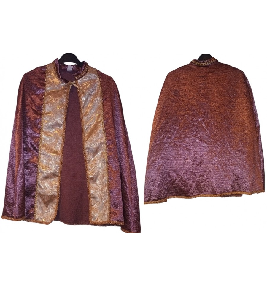 ✅Bardzo ładna peleryna, w kolorze fioletowym z złotym obszyciem, wiązana pod szyją.