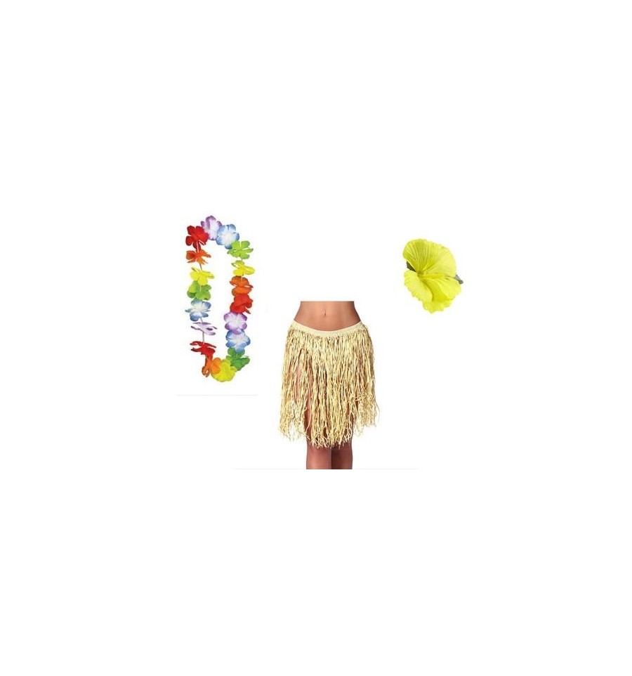 Zestaw Hawajski Premium Słomkowy Hawaje Aloha 3 el. Spódnica Naszyjnik Spinka