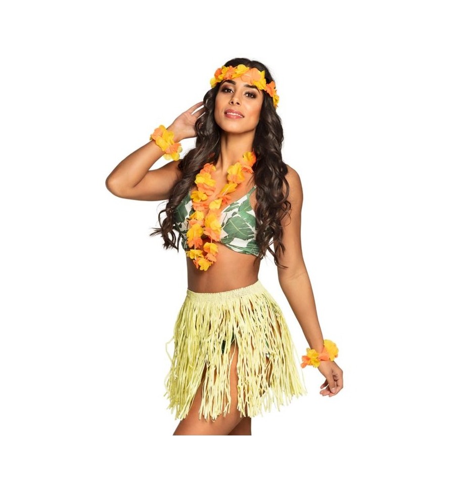 Zestaw Hawajski Żółty Kwiaty Spódnica Opaska Bransoletki Hawaje Aloha 3 el.
