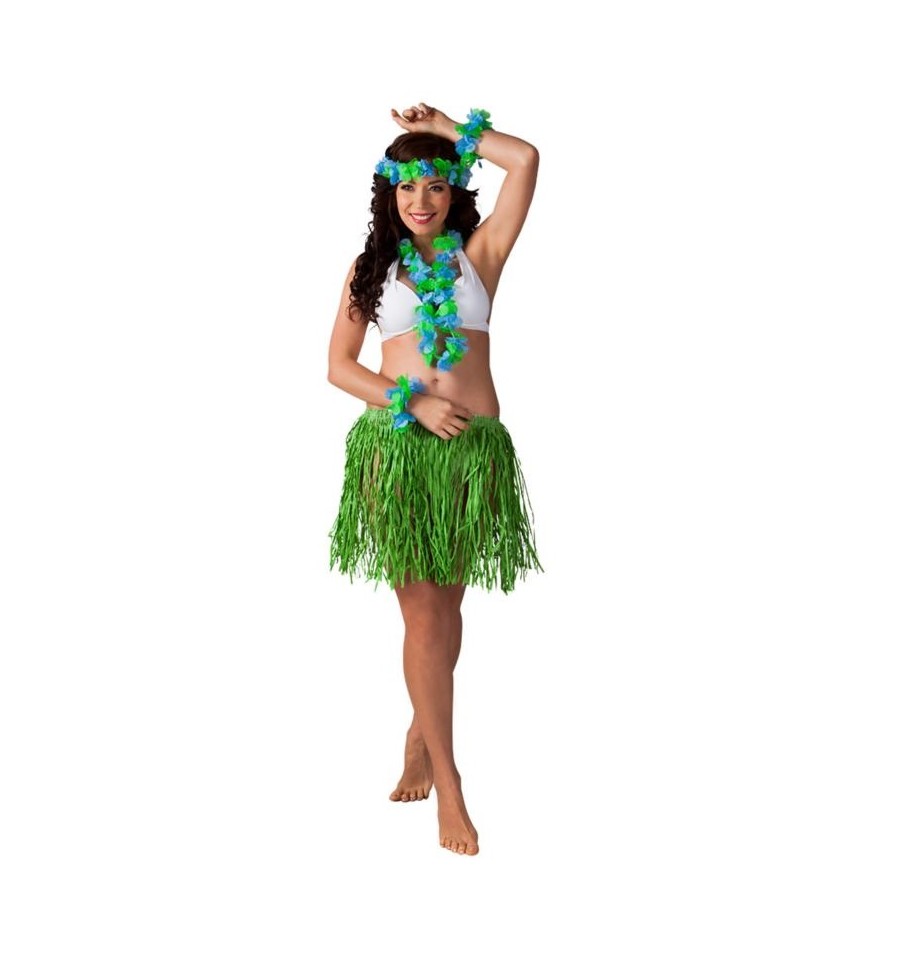 Zestaw Hawajski Zielony Kwiaty Spódnica Opaska Bransoletki Hawaje Aloha 3 el.