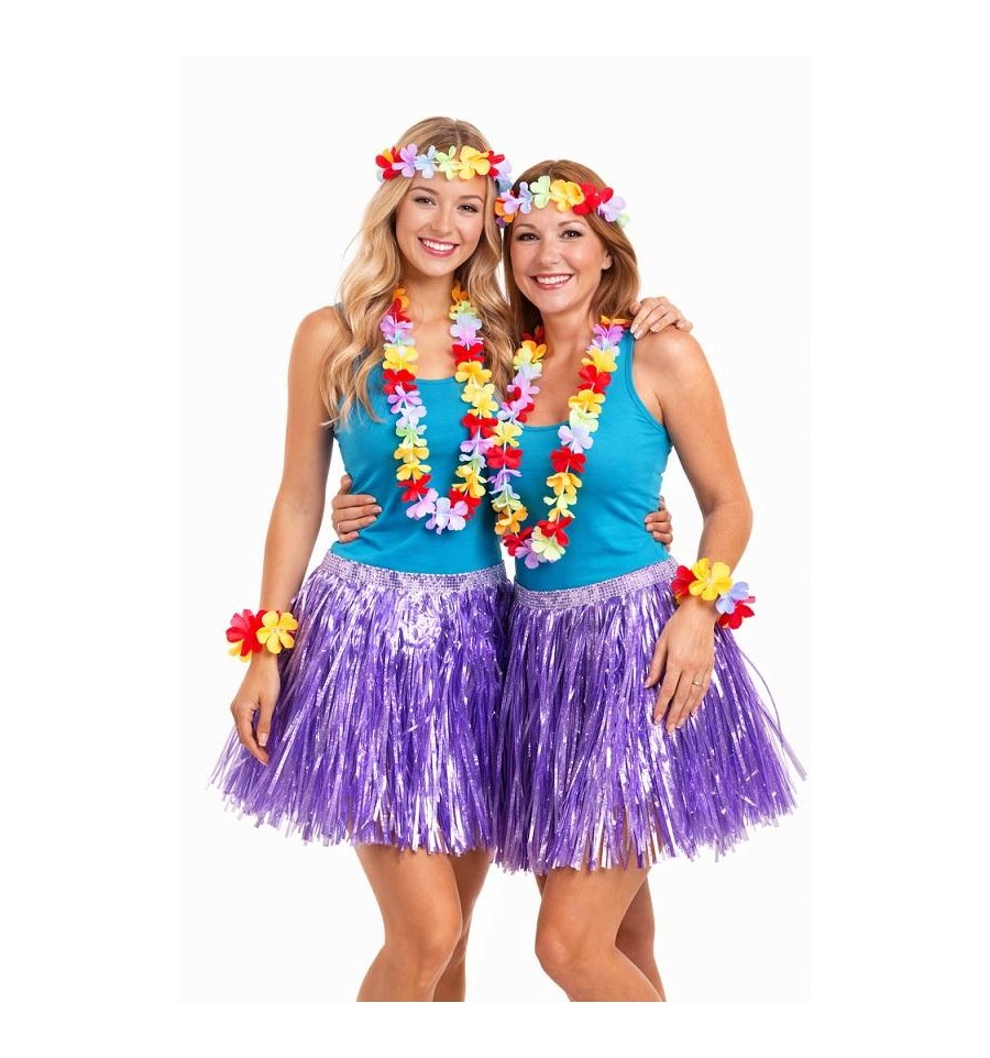 Zestaw Hawajski Fioletowy 5 el Spódnica Naszyjnik Opaska Bransoletki Hawaje