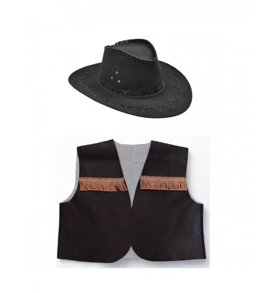 Zestaw Strój Kowboja Kamizelka Szeryfa Kapelusz Czarny 2 el dla dorosłych